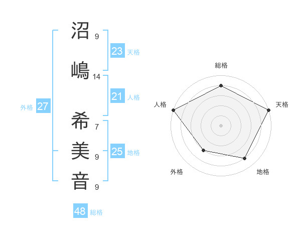 沼嶋 希美音さんの天格は23画の5点!