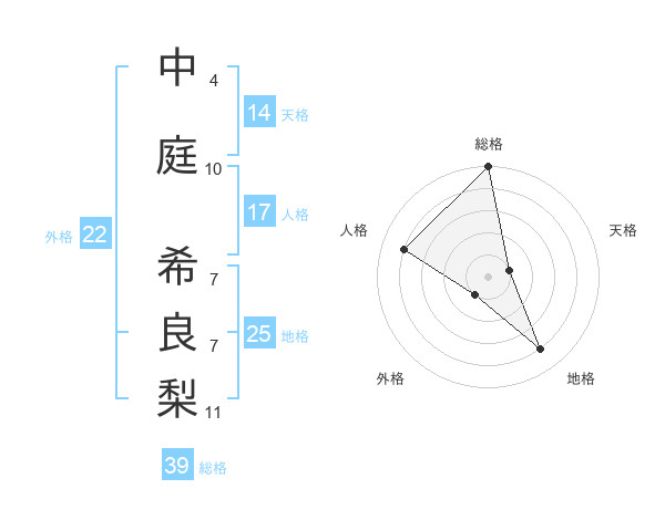 中庭 希良梨さんを姓名の画数から五運を鑑定