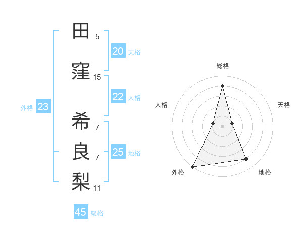 田窪 希良梨さんの外格は23画の5点!