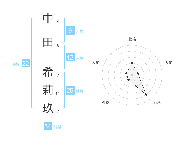 中田 希莉玖さんを姓名の画数から五運を鑑定