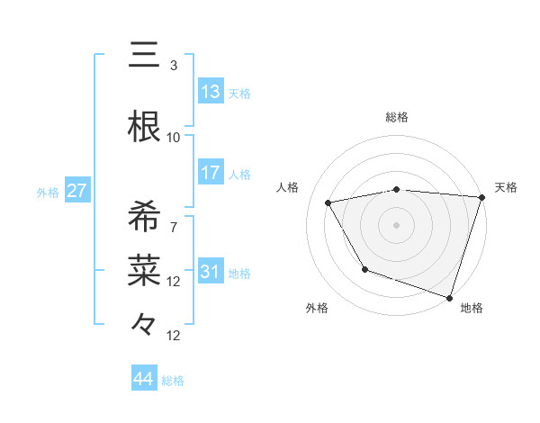 三根 希菜々さんの天格は13画の5点!