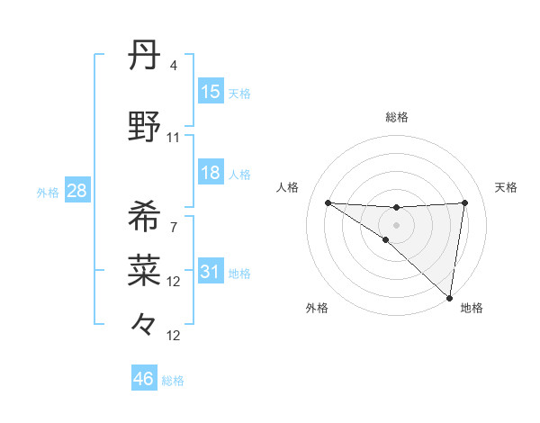 丹野 希菜々さんを姓名の画数から五運を鑑定