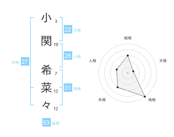 小関 希菜々さんを姓名の画数から五運を鑑定