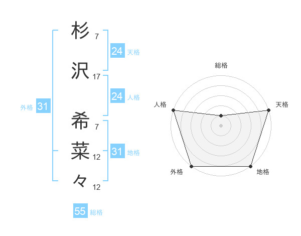 杉沢 希菜々さんを姓名の画数から五運を鑑定