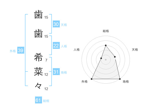 歯歯 希菜々さんを姓名の画数から五運を鑑定