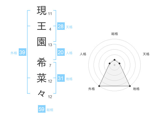 現王園 希菜々さんの総格は59画の1点!