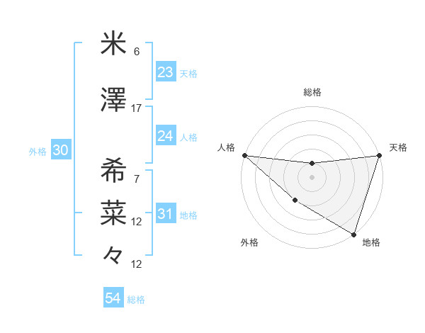 米澤 希菜々さんを姓名の画数から五運を鑑定