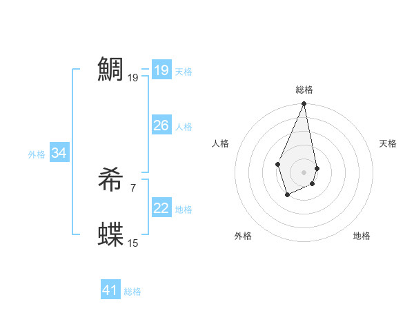 鯛 希蝶さんを姓名の画数から五運を鑑定