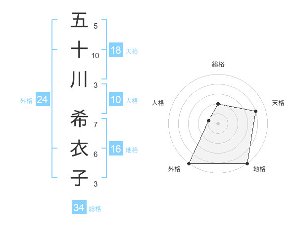 五十川 希衣子さんを姓名の画数から五運を鑑定