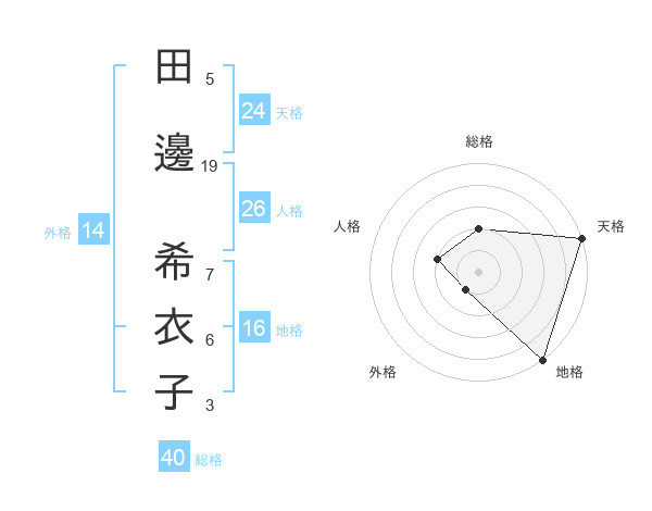 田邊 希衣子さんを姓名の画数から五運を鑑定