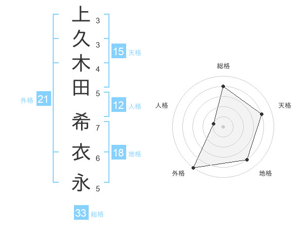 上久木田 希衣永さんを姓名の画数から五運を鑑定
