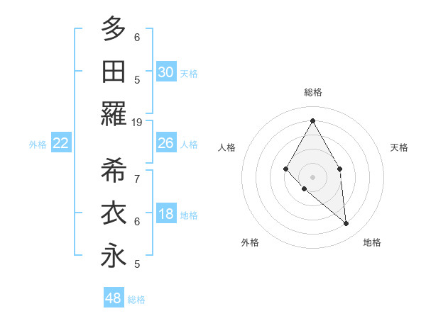 多田羅 希衣永さんを姓名の画数から五運を鑑定