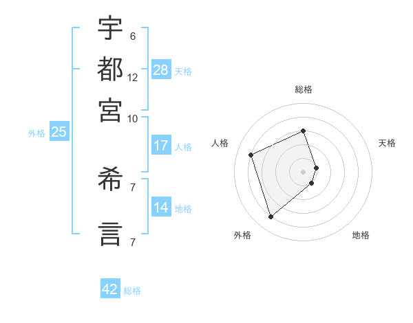 宇都宮 希言さんを姓名の画数から五運を鑑定