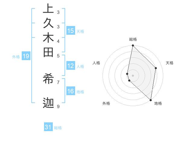 上久木田 希迦さんを姓名の画数から五運を鑑定