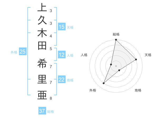 上久木田 希里亜さんを姓名の画数から五運を鑑定
