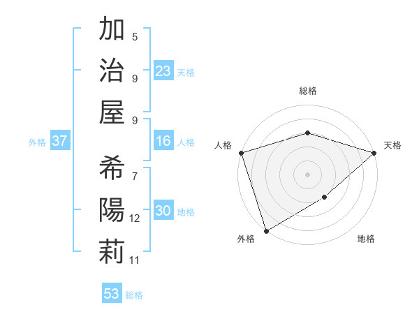 加治屋 希陽莉さんを姓名の画数から五運を鑑定
