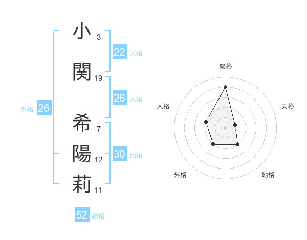 小関 希陽莉さんを姓名の画数から五運を鑑定