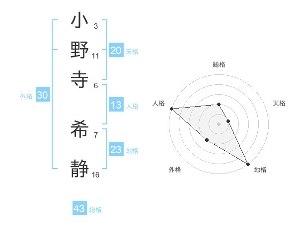 小野寺 希静さんを姓名の画数から五運を鑑定