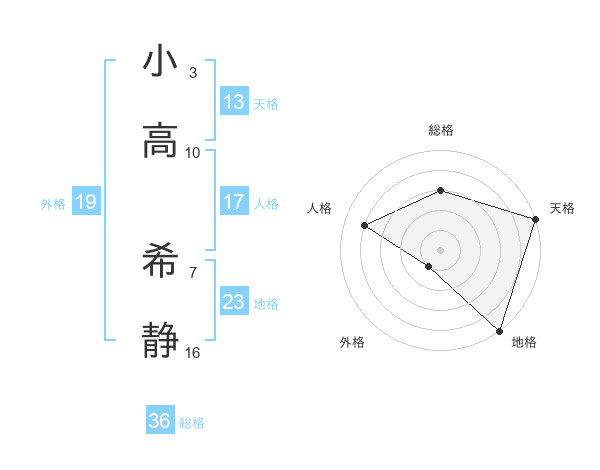 小高 希静さんの天格は13画の5点!