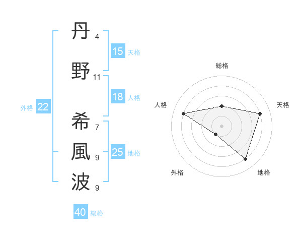 丹野 希風波さんを姓名の画数から五運を鑑定