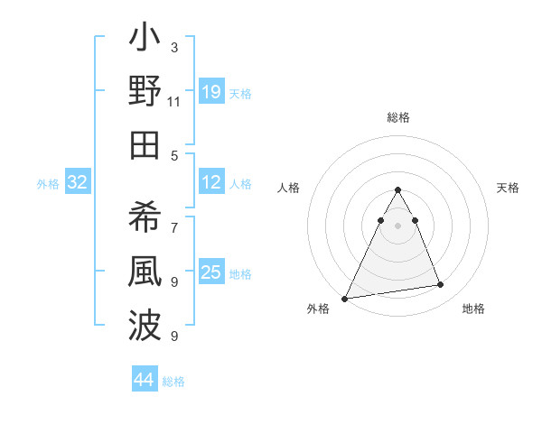 小野田 希風波さんを姓名の画数から五運を鑑定