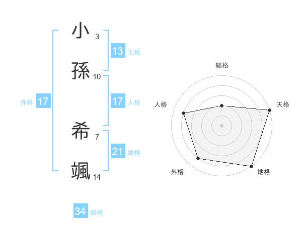 小孫 希颯さんの外格は17画の4点!