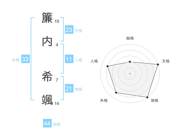 簾内 希颯さんの天格は23画の5点!