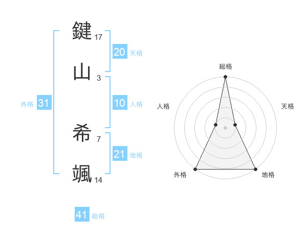 鍵山 希颯さんを姓名の画数から五運を鑑定