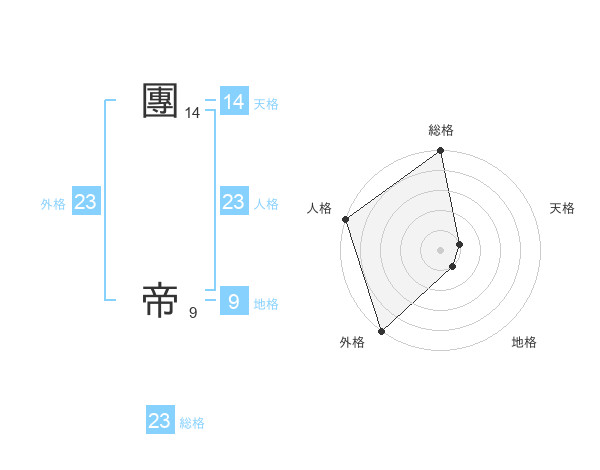 團 帝さんの外格は23画の5点!