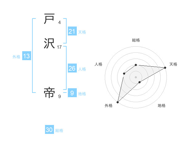戸沢 帝さんの外格は13画の5点!