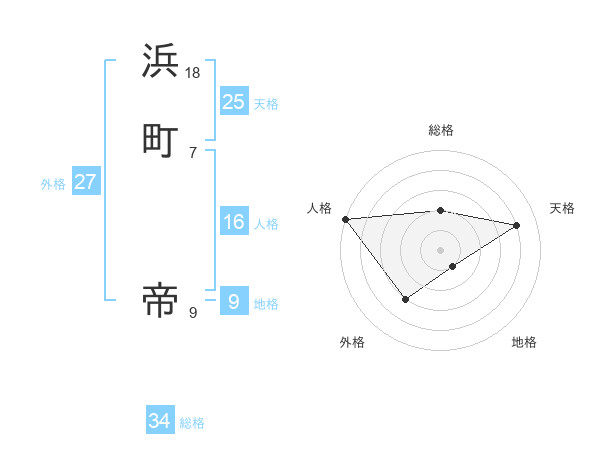 浜町 帝さんの天格は25画の4点!