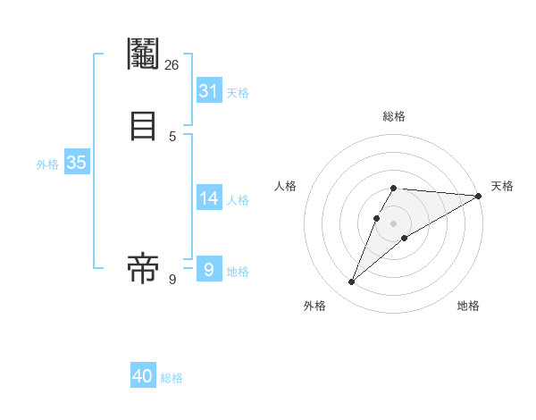 鬮目 帝さんを姓名の画数から五運を鑑定