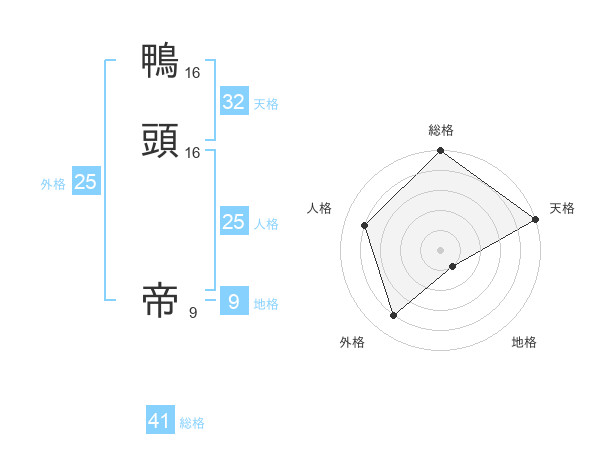 鴨頭 帝さんを姓名の画数から五運を鑑定