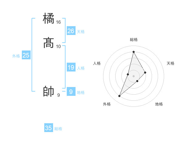 橘髙 帥さんを姓名の画数から五運を鑑定