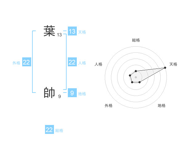 葉 帥さんの総格は22画の1点!