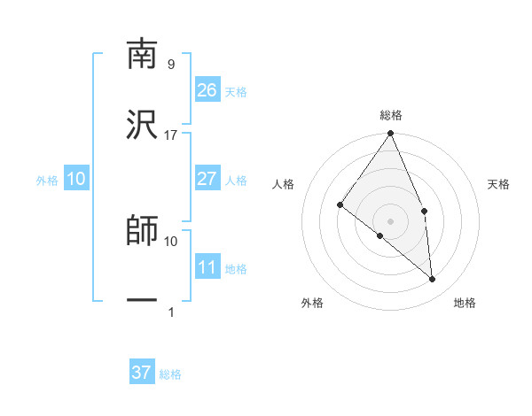 南沢 師一さんの総格は37画の5点!