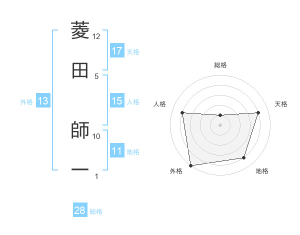 菱田 師一さんの天格は17画の4点!