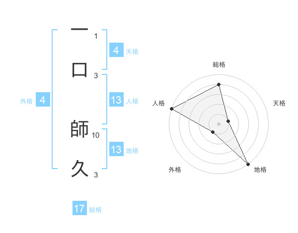 一口 師久さんの総格は17画の4点!