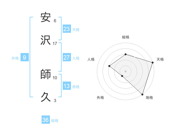 安沢 師久さんの総格は36画の3点!