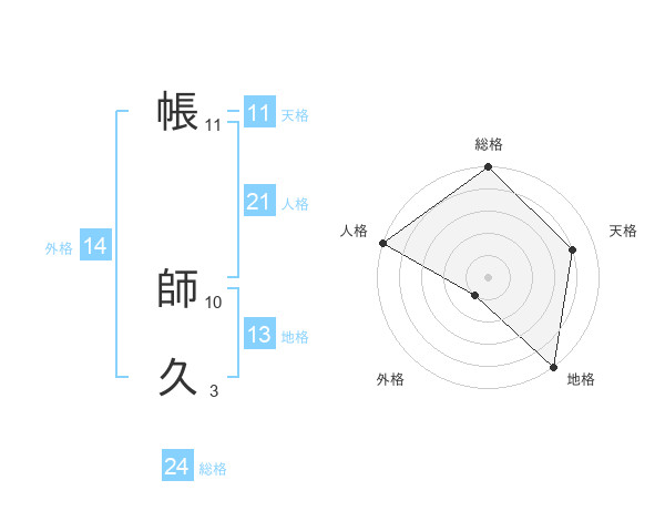 帳 師久さんの人格は21画の5点!
