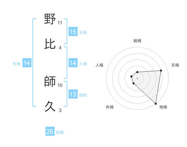 野比 師久さんの総格は28画の1点!