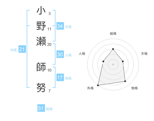 小野瀬 師努さんを姓名の画数から五運を鑑定