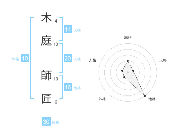 木庭 師匠さんを姓名の画数から五運を鑑定