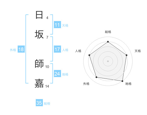 日坂 師嘉さんを姓名の画数から五運を鑑定