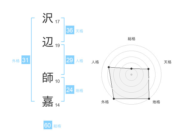 沢辺 師嘉さんの外格は31画の5点!