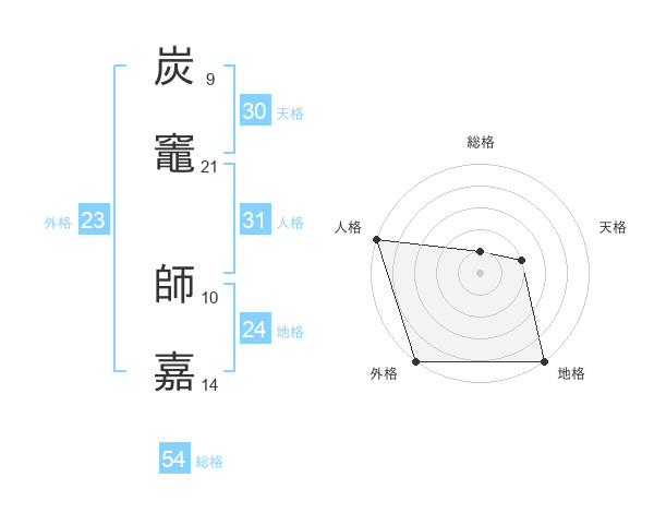 炭竈 師嘉さんを姓名の画数から五運を鑑定