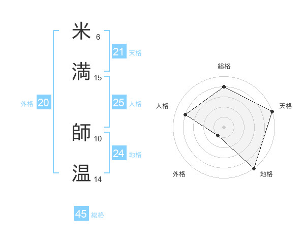 米満 師温さんの総格は45画の4点!