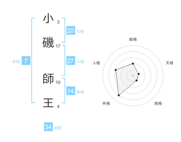 小磯 師王さんの総格は34画の2点!