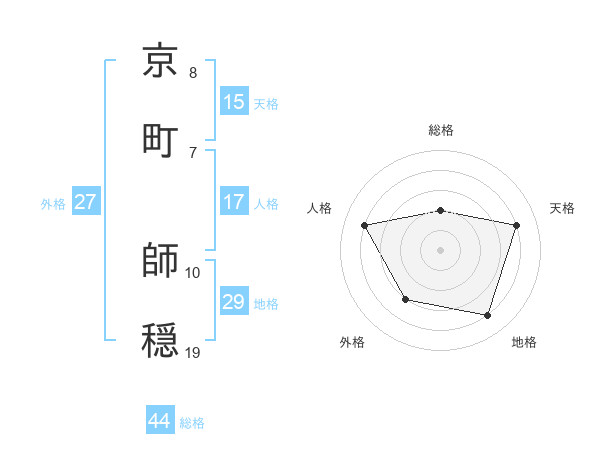 京町 師穏さんの総格は44画の2点!