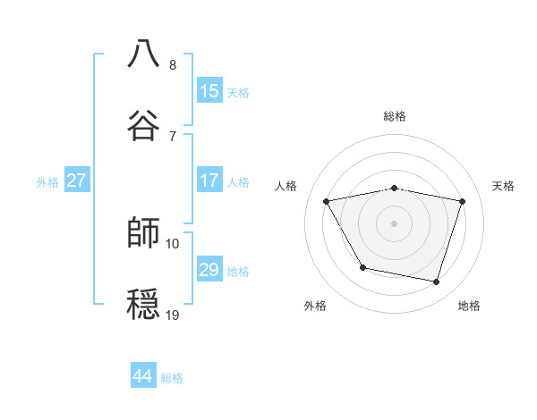 八谷 師穏さんの総格は44画の2点!